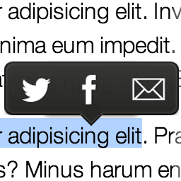 Medium like popover menu to share on Twitter, Facebook, LinkedIn or by email any text selected on the...