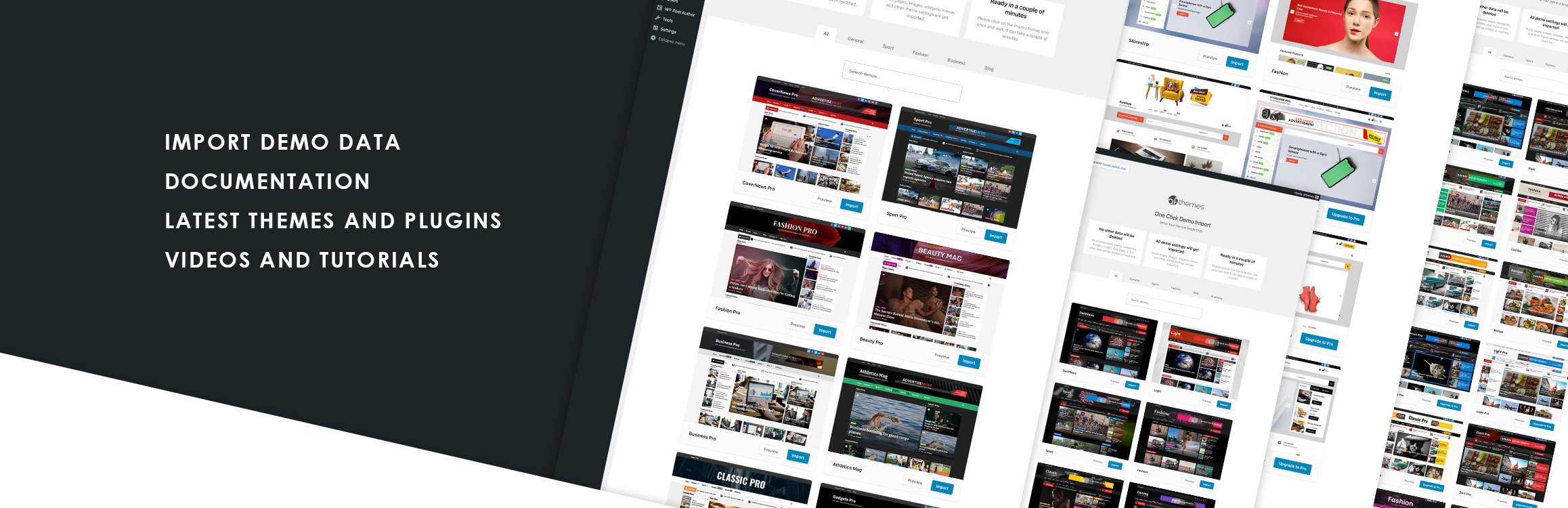 Quickly import live demo content, widgets and settings with one click